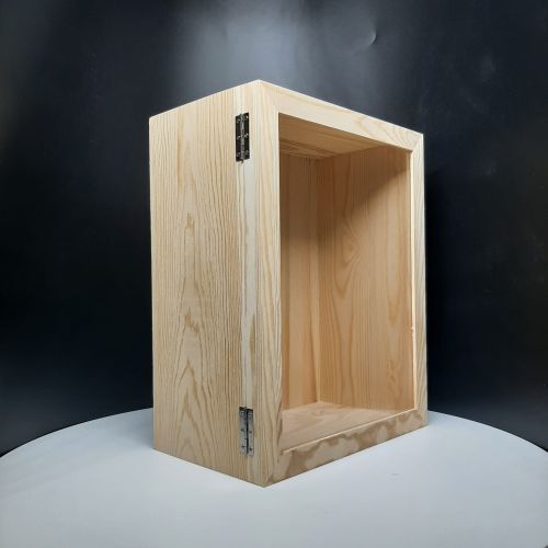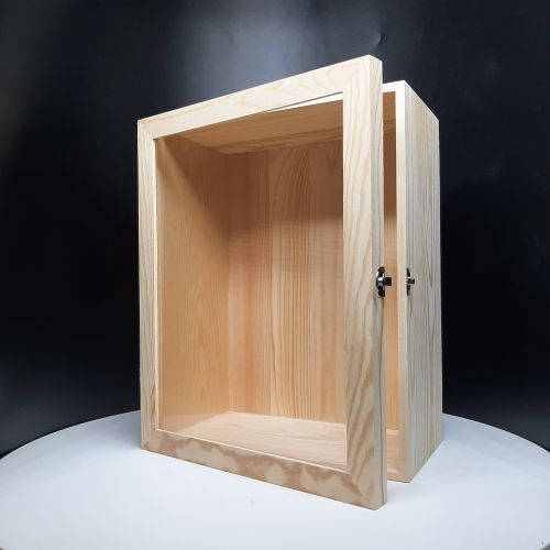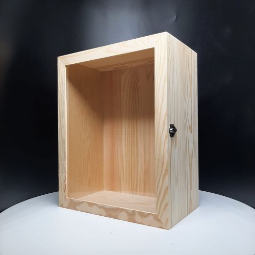 Extra deep wooden shadow box with glass door.