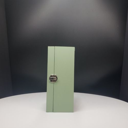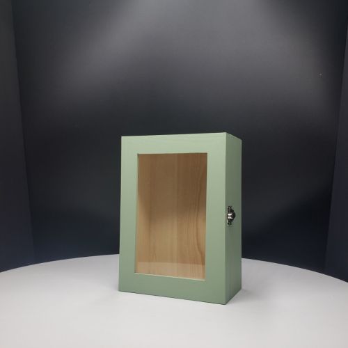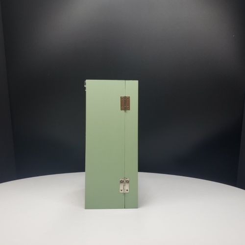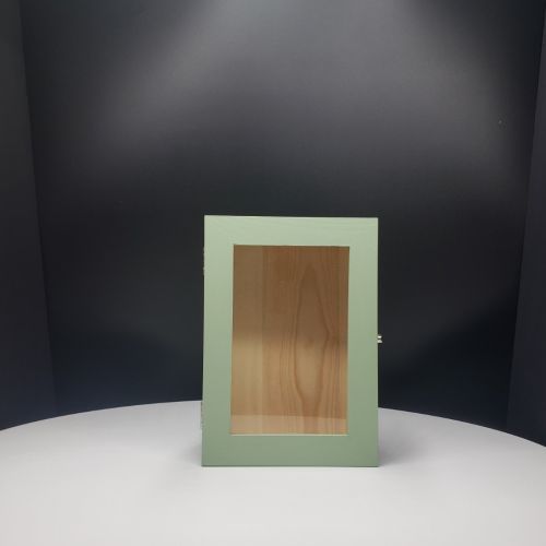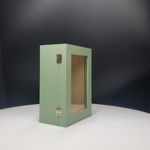 Shadow box Sage Green color with glass door; Inside dimensions:   5.5" x 8" x 3" ; For detailed description, please see DESCRIPTION below.