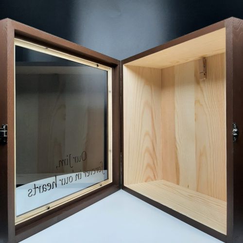 Large extra deep shadow box with glass door, made of pine wood, back panel made of plywood.