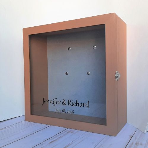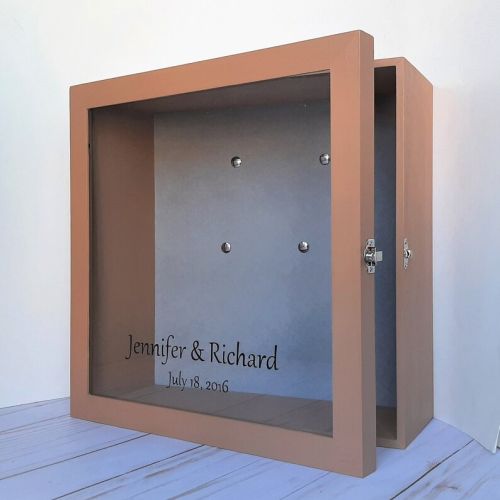 Large extra deep shadow box with glass door, made of pine wood. This variant is with soft velvet backing and pins.